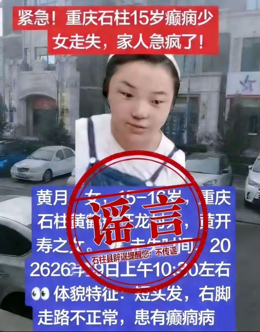 关于网传“石柱县15岁癫痫少女走失”信息的辟谣公告